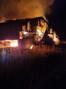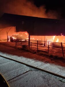 Firefighters worked with local farmers to ensure a fire break was created around the barn, further reducing the possible spread of the fire. Our stop came in at 12.19pm today (2 August) and the incident has been handed back to the owner who will monitor remaining bales as a controlled burn.