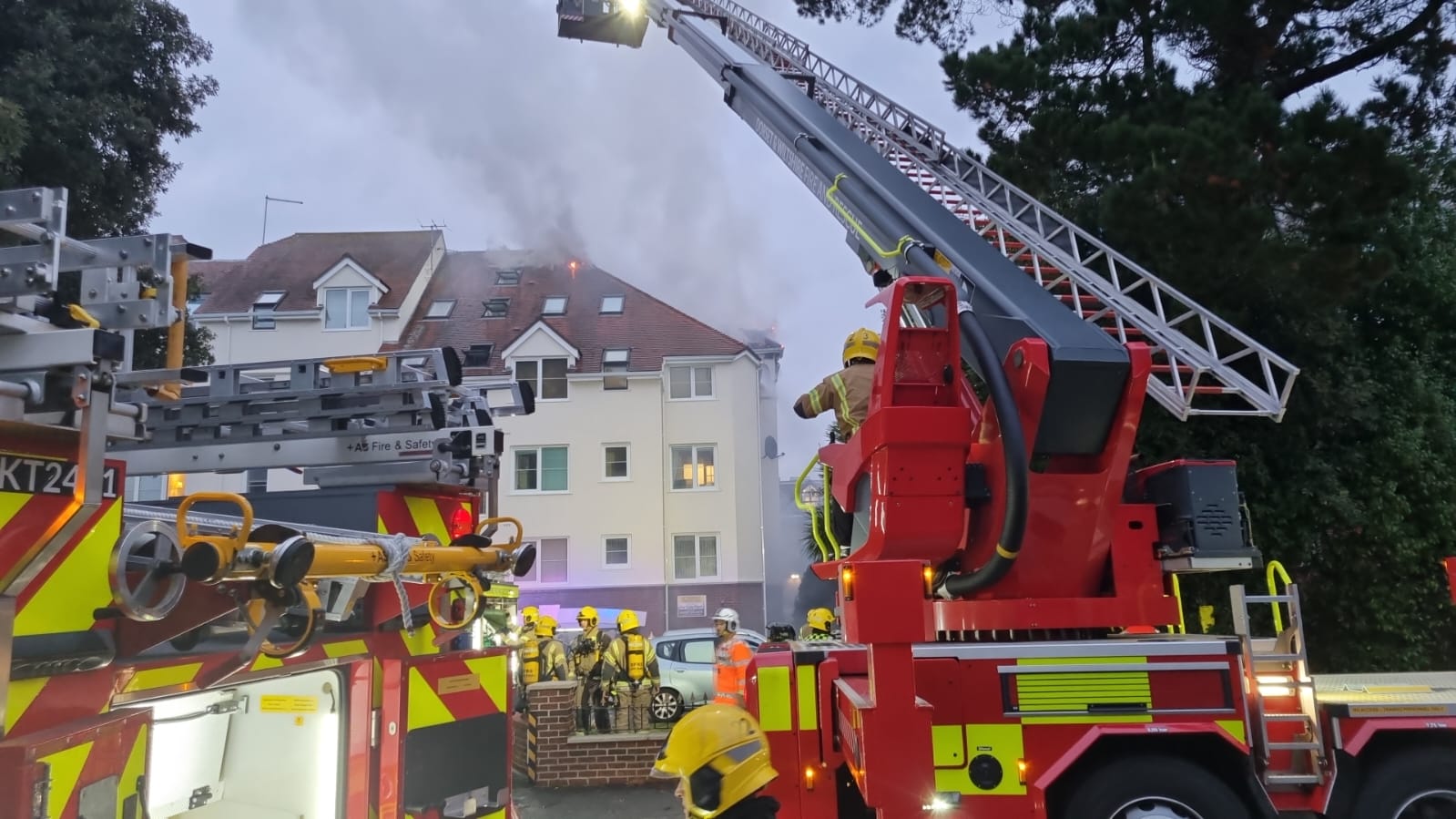 Also on scene are the aerial ladder platform from Westbourne, support appliances from Hamworthy and Dorchester, and a water carrier from Poole.